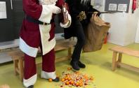 Der Santiglaus und sein Schmutzli waren im Wehrlinschulhaus zu Besuch. Allen Klassen haben sie Grättimänner, Nüsse und Mandarinen gebracht und der Santiglaus hat aus seinen Notizen im grossen Buch vorgelesen. Dafür bekamen sie von den Kindern viele Verse und Lieder zu hören.