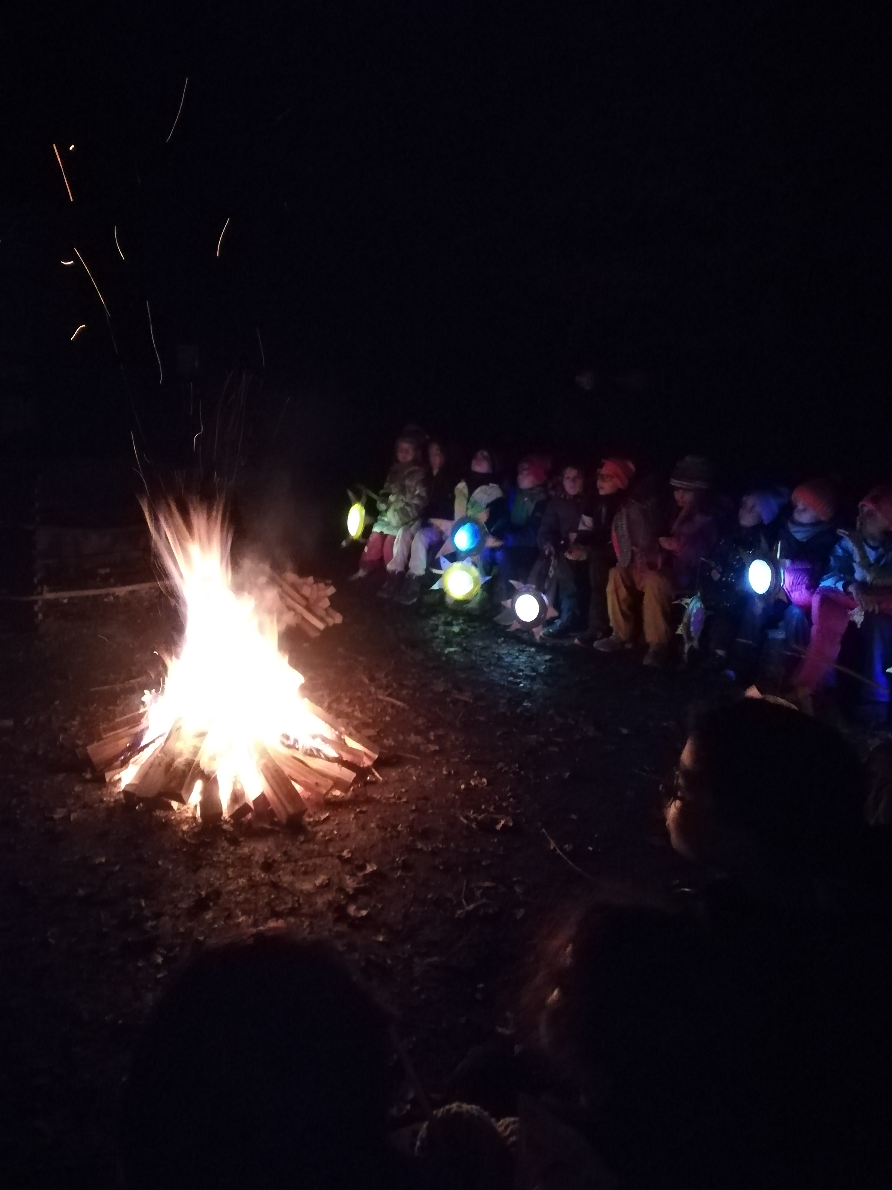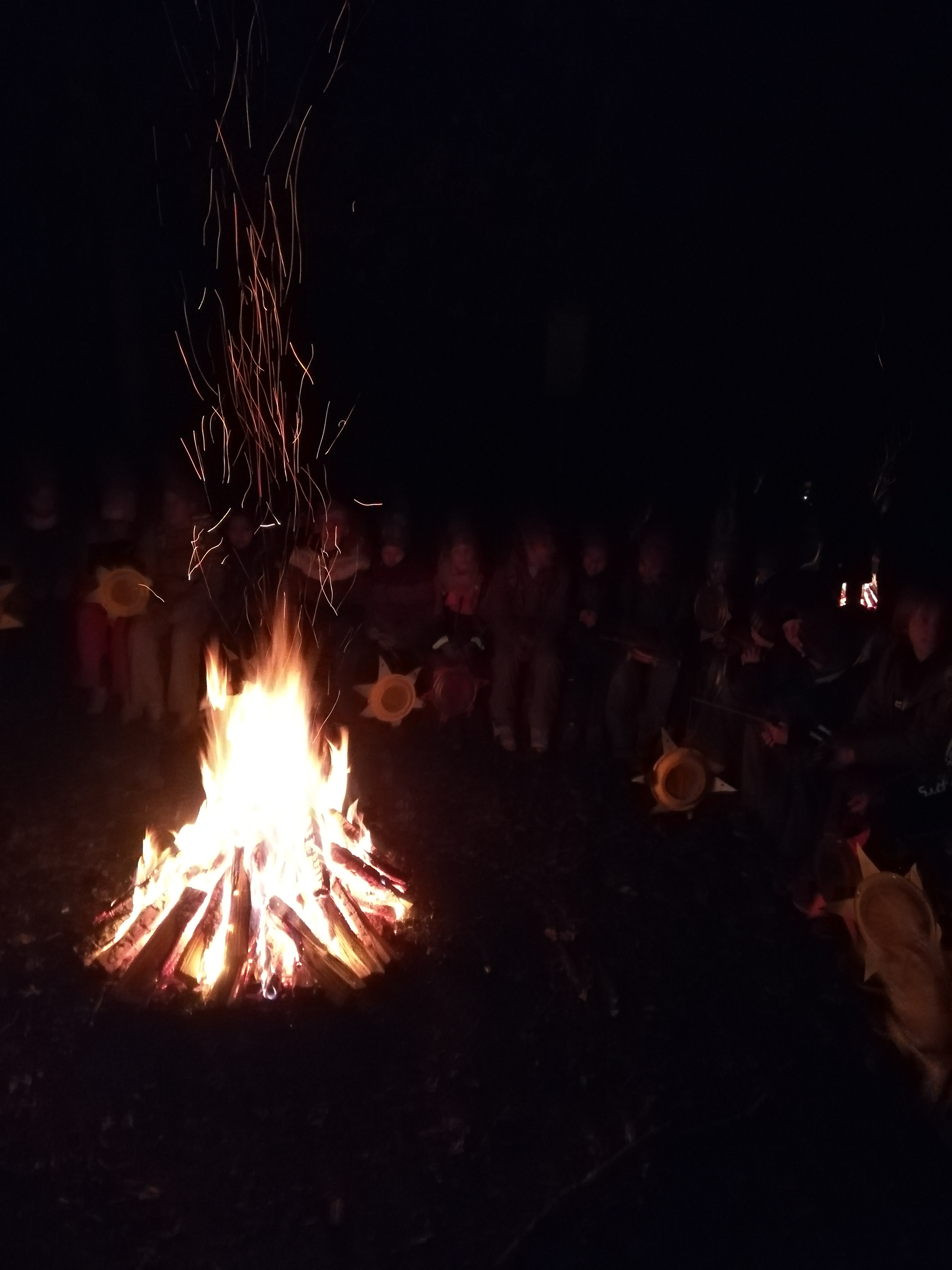 Mit den gebastelten Laternen sind wir zusammen zur Allmen hochspaziert. Gemeinsam haben wir nochmals einige Lieder gesungen. Dann sind jeweils die zwei Götti-Gottenklassen um ein Feuer gesessen. Wir haben von der Elterngruppe warmen Punsch und ein Zuckerweggli erhalten. Einige haben noch Marshmallows und Äpfel gebraten, andere ein Quiz gemacht und eine Geschichte gehört. Schnell ging die Zeit vorbei und wir mussten uns mit unseren Laternen bereits wieder auf den Weg zum Schulhaus machen.