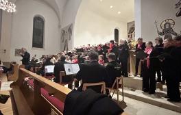 Das Konzert begann mit dem feierlichen Einzug des Studienchors und der Schülerinnen und Schüler in die katholische Kirche Ettingen.