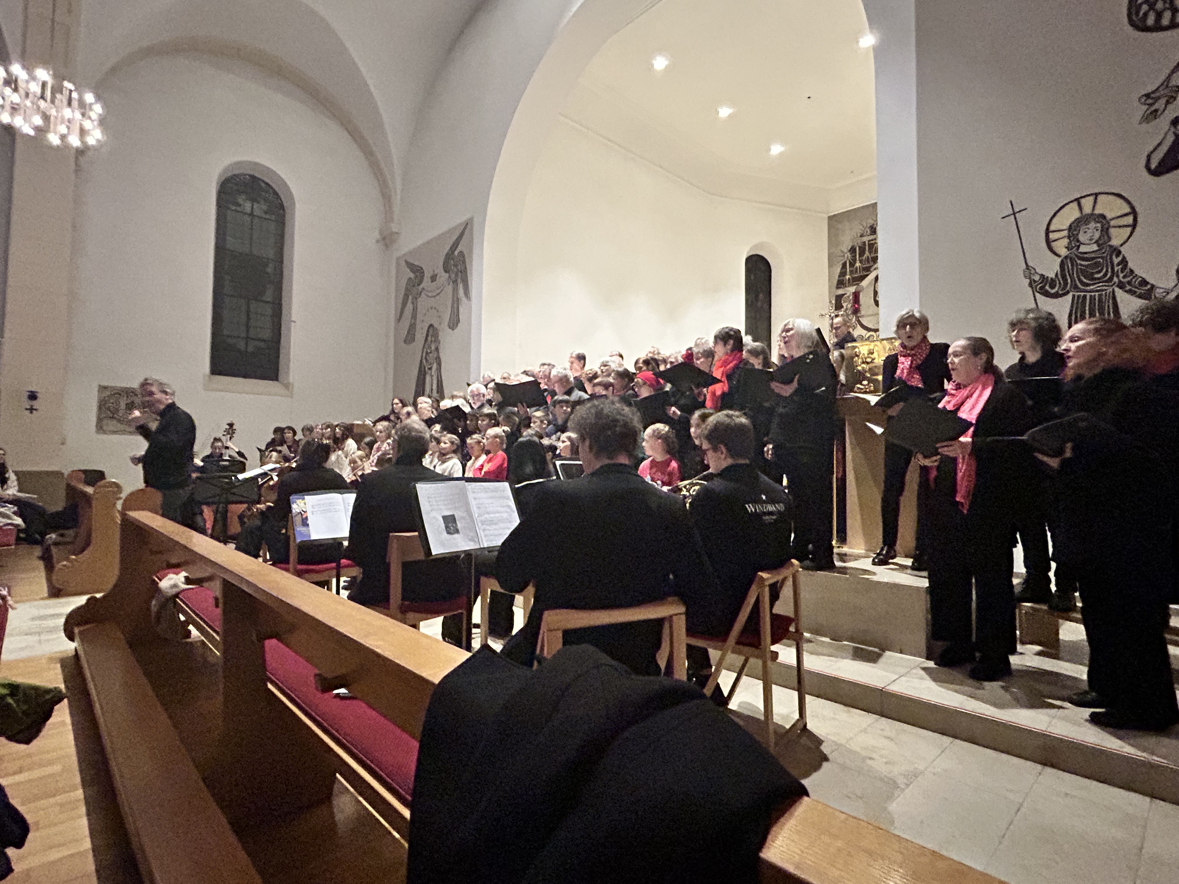 Während eineinhalb Stunden wurde nun mit Erzählungen des künstlerischen Leiters Sebastina Goll und dazu passenden Liedern die Weihnachtsgeschichte lebendig. Begleitet vom Musikensemble und dem künstlerischen Können der Erwachsenen sprang die Freude der Kinder auf das Publikum über und brachte die Herzen aller in vorweihnachtliche Stimmung.